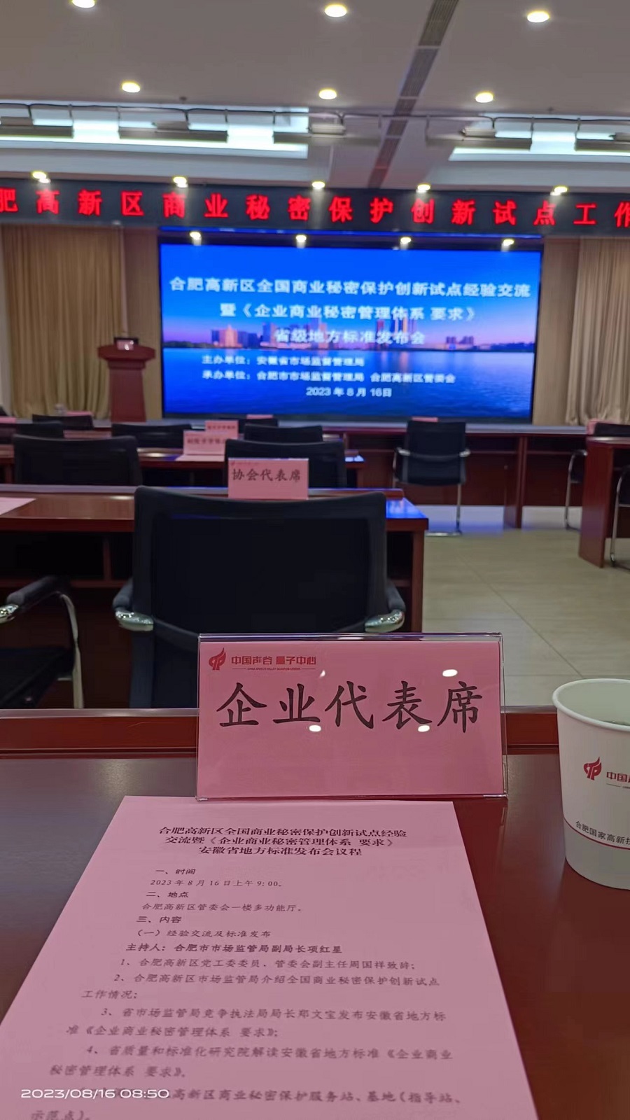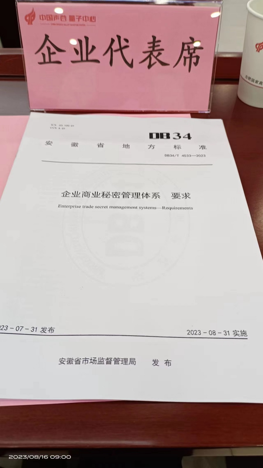 埃里斯受邀参加:合肥高新区《企业商业秘密管理体系要求》省级地方标准发布会