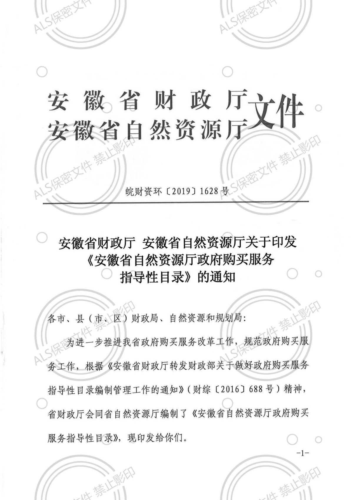 财综〔2016〕688号《安徽省自然资源厅政府购买服务指导性目录》