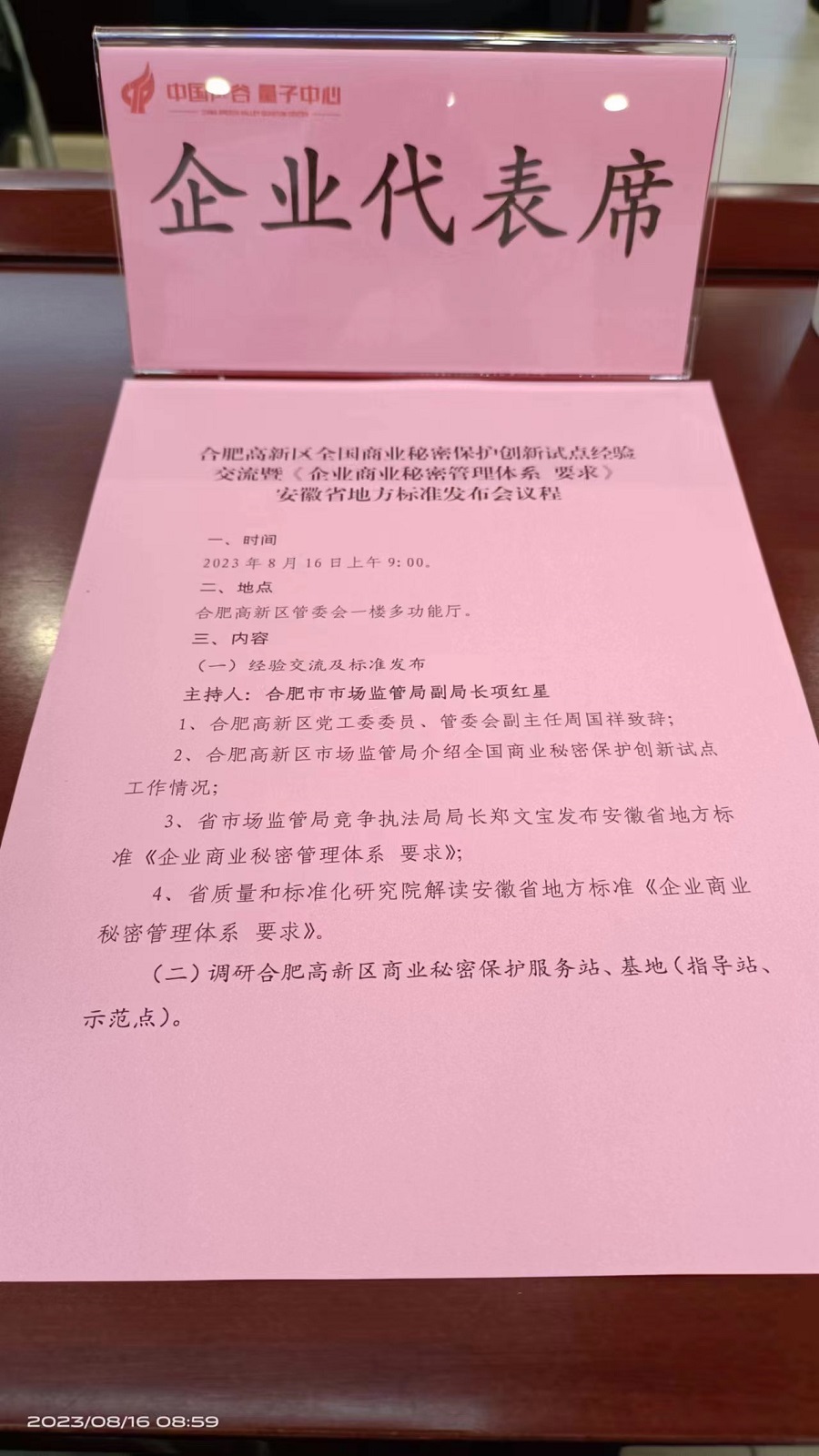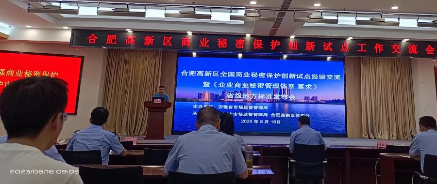 埃里斯受邀参加:合肥高新区《企业商业秘密管理体系要求》省级地方标准发布会