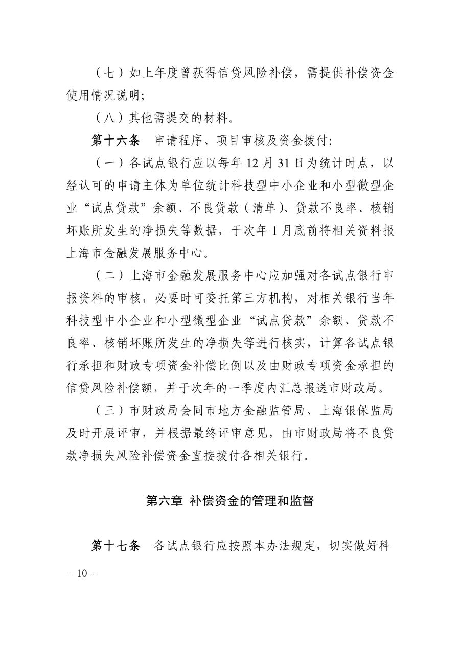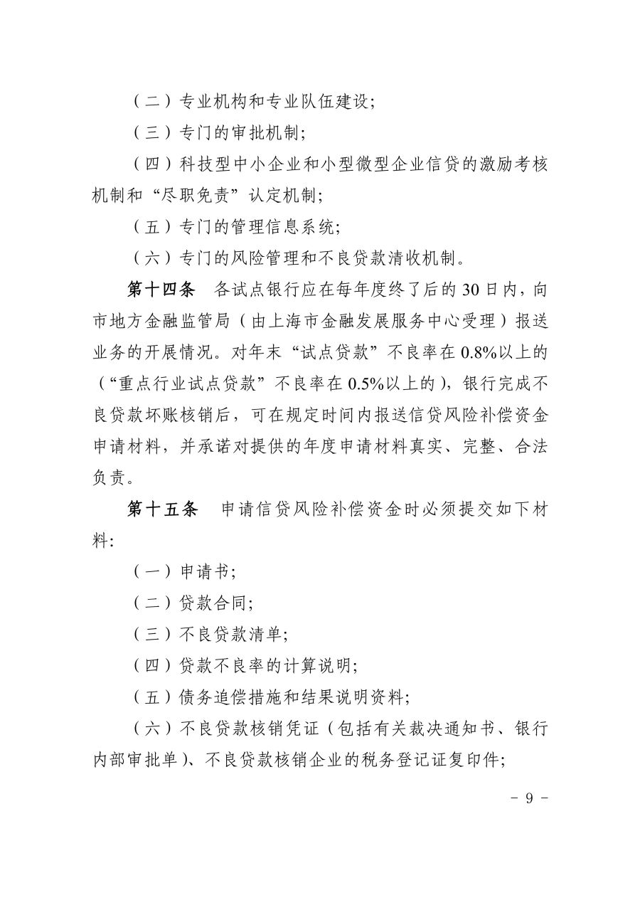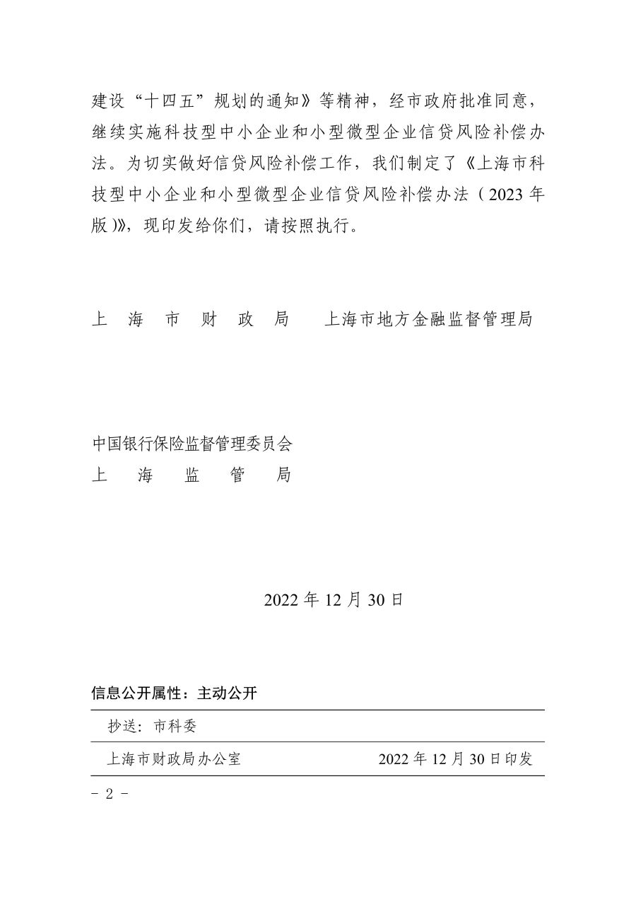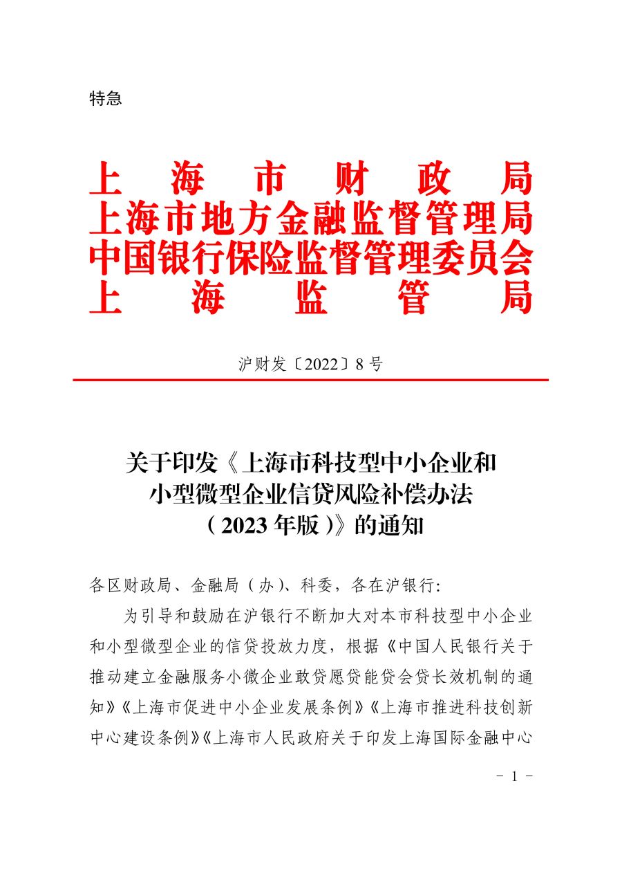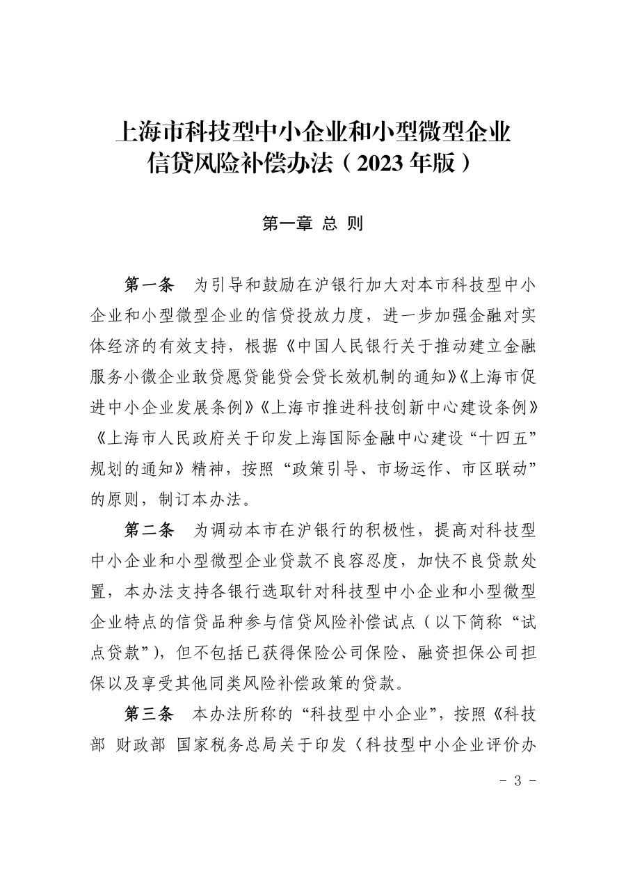 《上海市科技型中小企业和小型微型企业信贷风险补偿办法(2023年版)》