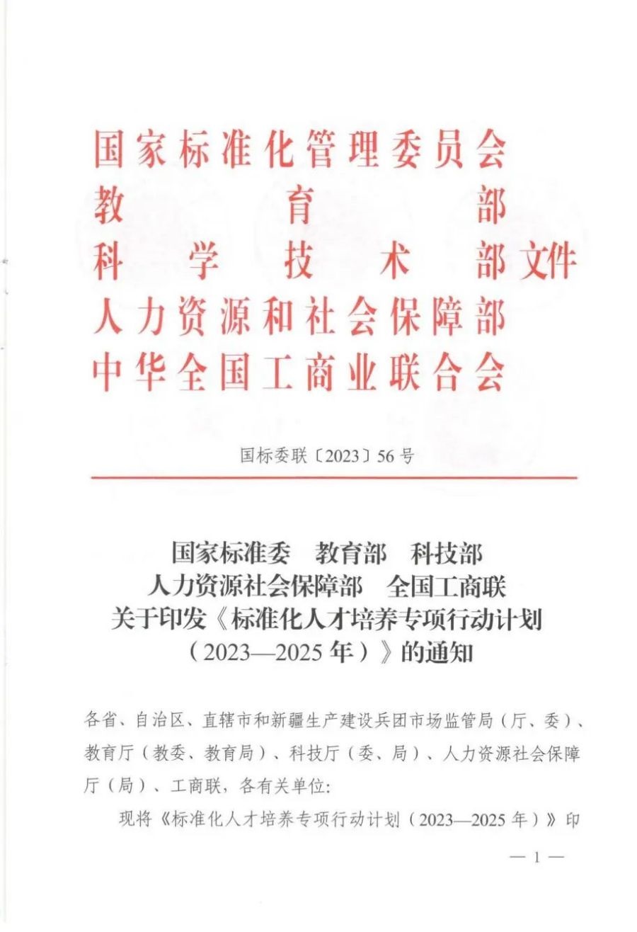 国家标准委等五部门关于印发标准化人才培养专项行动计划(2023—2025年)的通知