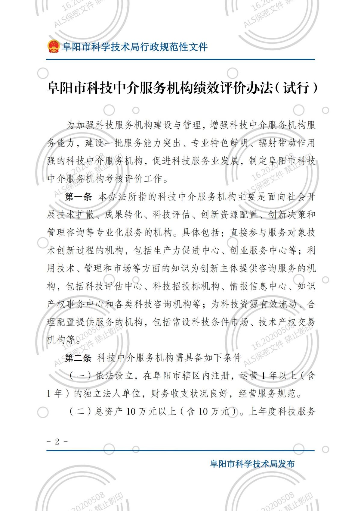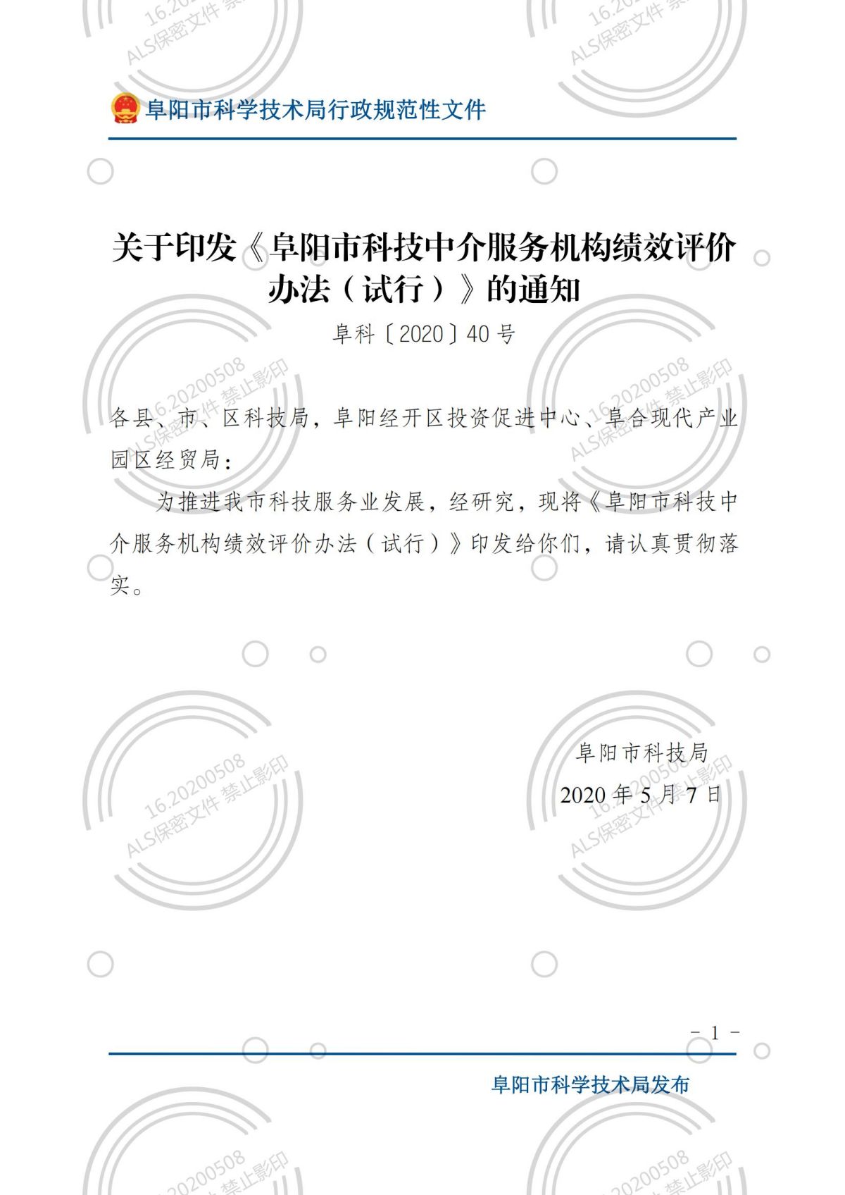 关于印发《阜阳市科技中介服务机构绩效评价办法(试行)》的通知