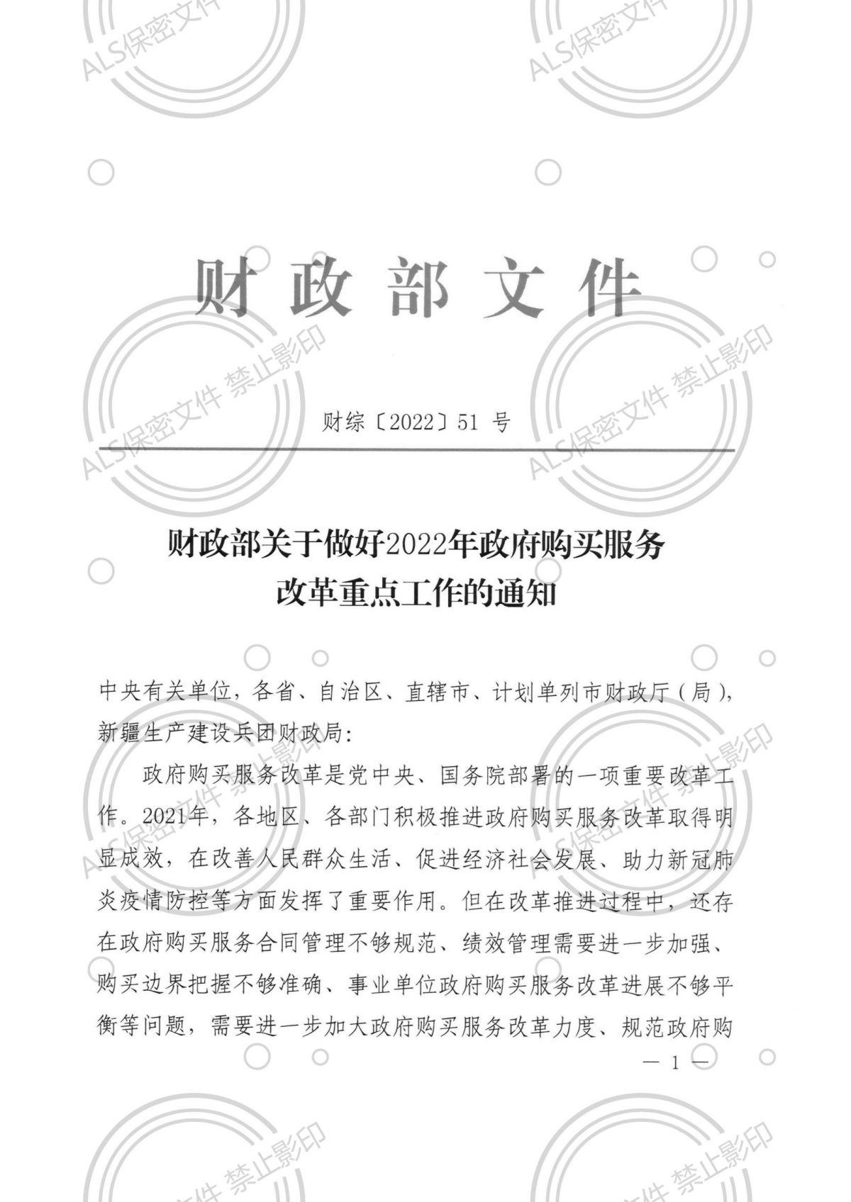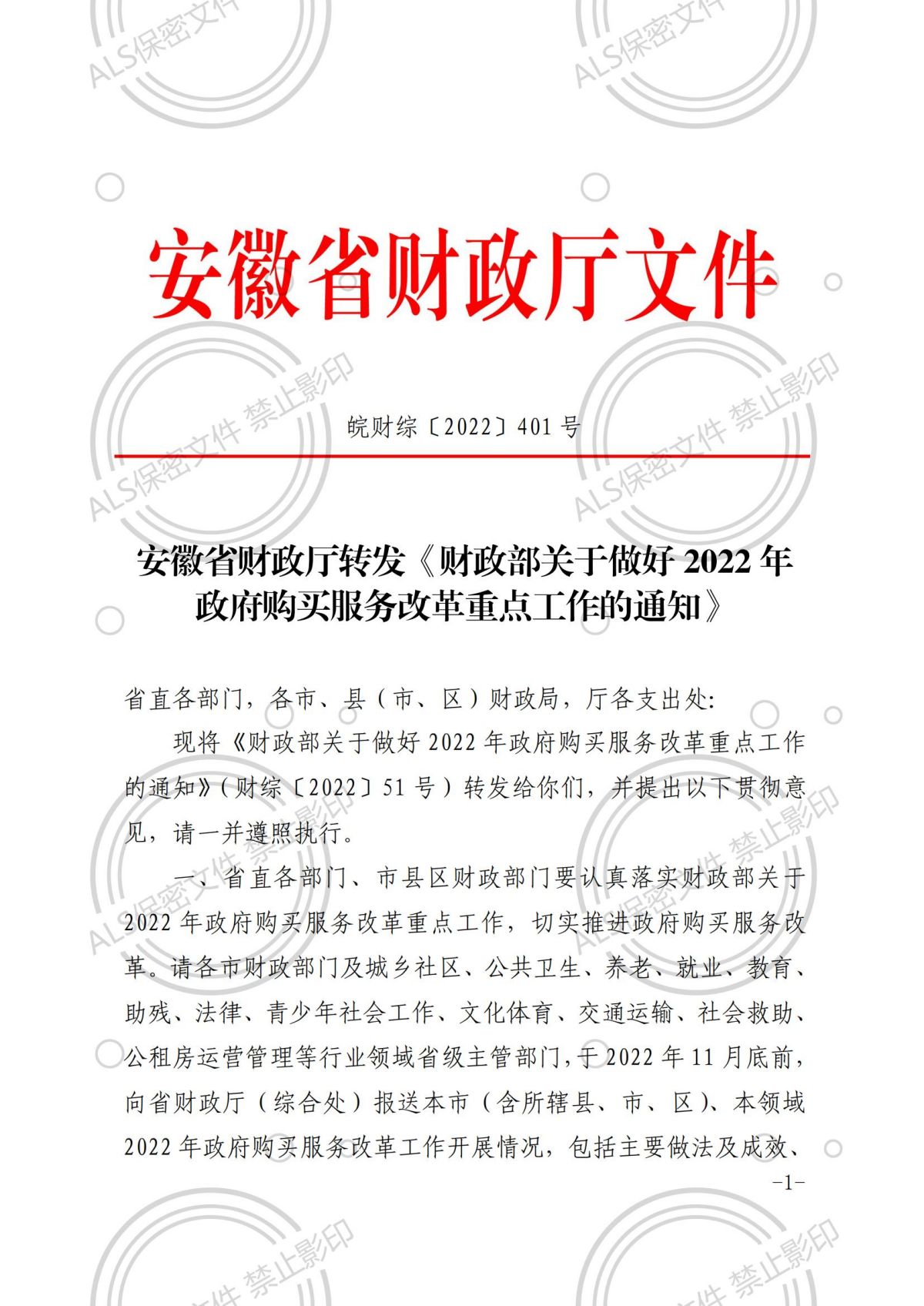 皖财综〔2022〕401号《安徽省财政厅转发《财政部关于做好2022年政府购买服务改革重点工作的通知》财综〔2022〕51号