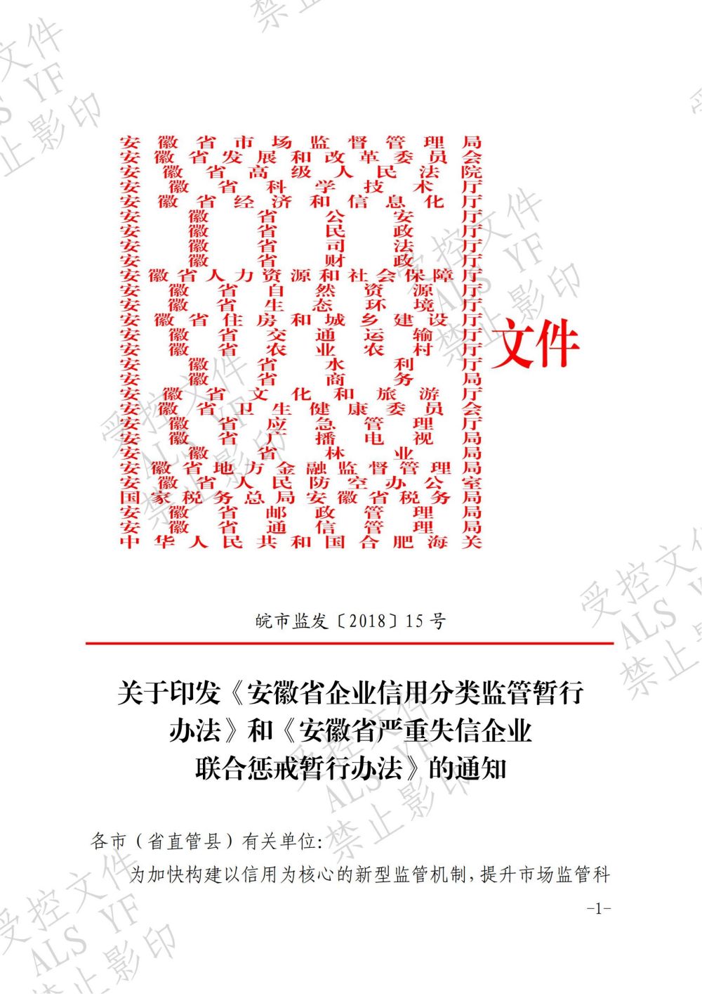 皖市监:安徽省企业信用分类监管暂行办法》和《安徽省严重失信企业联合惩戒暂行办法》皖市监发〔2018〕15号《